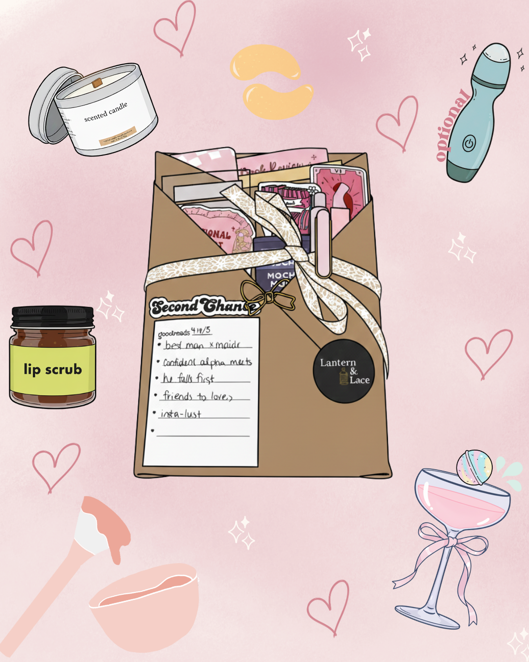 Our Galentines’s Blind Date Book Box is a curated, cozy-meets-romantic experience designed to set the mood, no planning required.